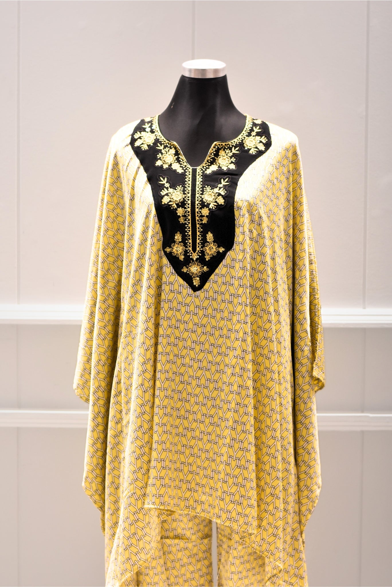 Experience elegance with this silk kaftan, available in three sophisticated colors. Crafted from smooth silk, it offers a luxurious feel and breathable comfort, perfect for various occasions. Its flowing design ensures ease of movement while maintaining a refined silhouette. Ideal for those seeking a blend of tradition and contemporary style in their wardrobe.